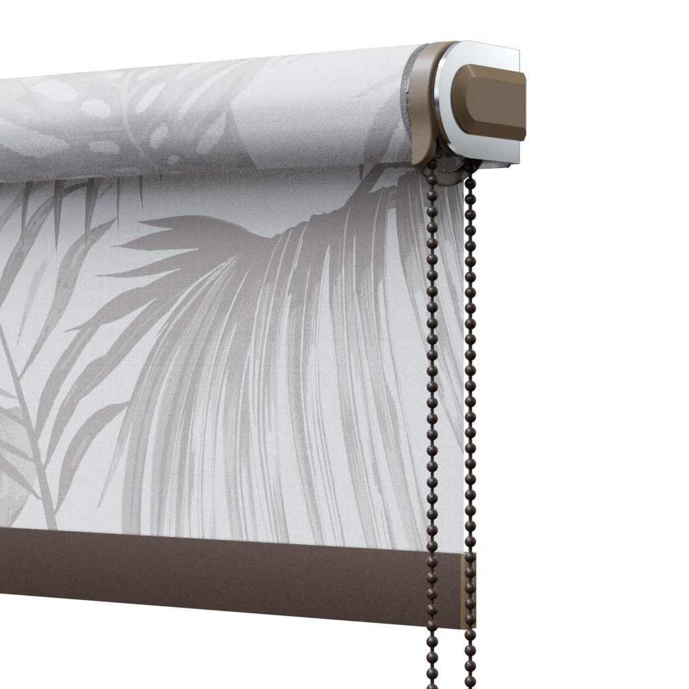 Tenda a rullo azionamento combinato plus. Comando brevettato che offre, allo stesso tempo, la praticità della catenella e la sofisticatezza della molla decelerata. La discesa della tenda avviene con l'azionamento della catenella, la molla decelerata permette una risalita automatica, unica nel suo genere.