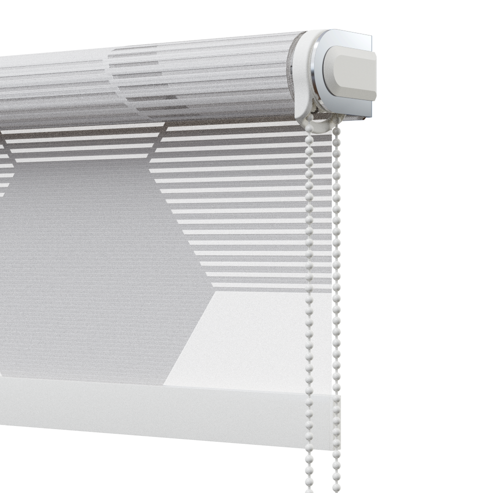 Tenda a rullo azionamento combinato plus. Comando brevettato che offre, allo stesso tempo, la praticità della catenella e la sofisticatezza della molla decelerata. La discesa della tenda avviene con l'azionamento della catenella, la molla decelerata permette una risalita automatica, unica nel suo genere.