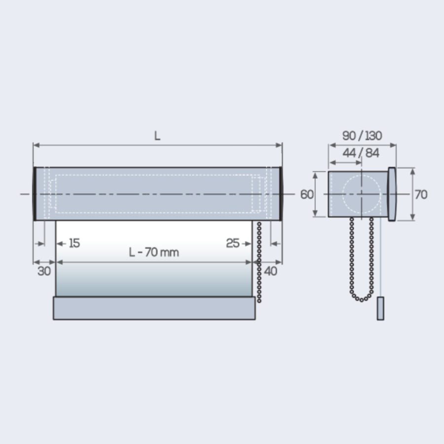 Le tende a rullo con azionamento a catenella sono quelle più universali perché possono essere realizzate in piccole dimensioni per finestre e porta finestre o anche in grandi dimensioni in presenza di grandi vetrate quali complementi per il risparmio energetico.