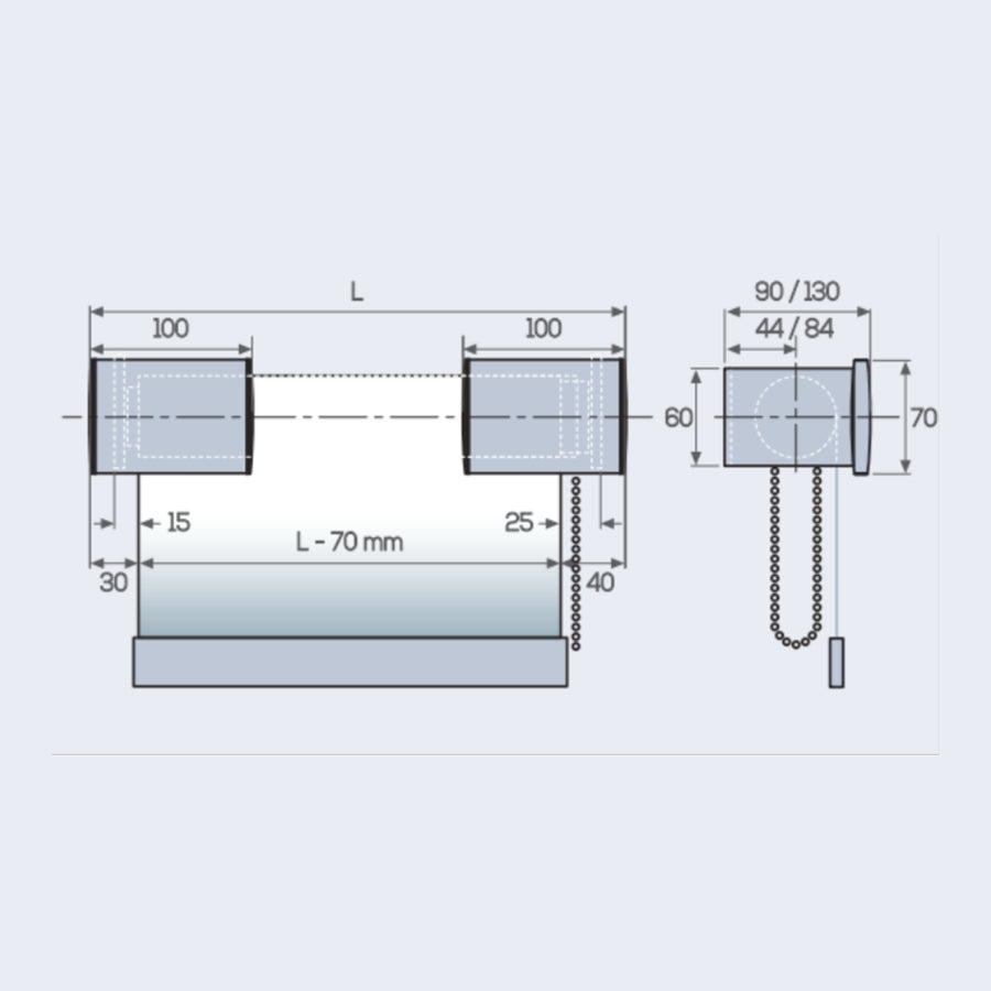 TENDA A RULLO - AZIONAMENTO COMBINATO CATENELLA E MOLLA DECELERATA