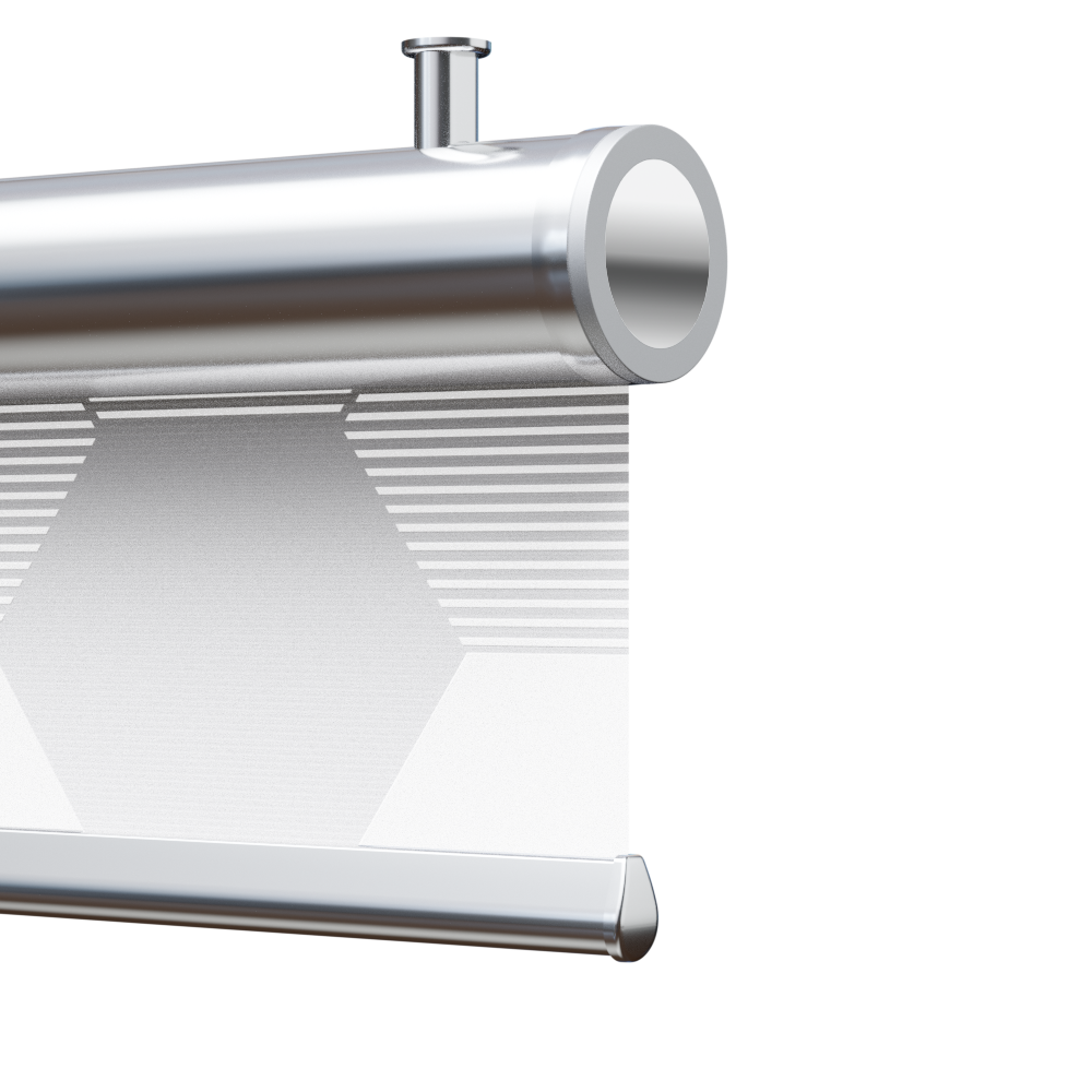 tenda a rullo manuale con cassonetto estetico in alluminio, tessuto fantasia geometrica,1900R11-PI